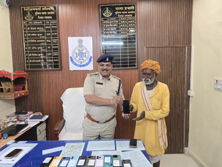 रतलाम: जिले में गुम और चोरी हुए मोबाइल फोन की बरामदगी के लिए रतलाम पुलिस द्वारा लगातार अभियान चलाया जा रहा है। इसी क्रम में थाना आलोट पुलिस को महत्वपूर्ण सफलता मिली है। पुलिस ने गुम हुए मोबाइल फोन को ट्रेस कर उनके वास्तविक मालिकों को वापस सौंपा है।