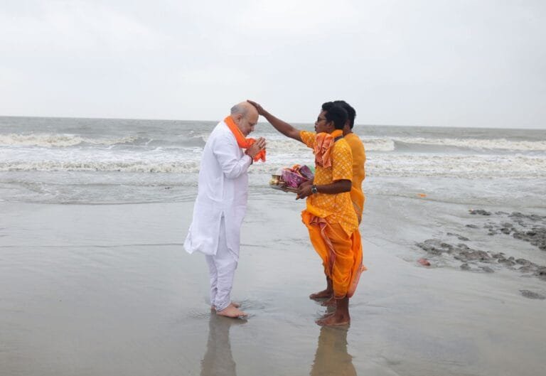 - amit-shah-visits-bengalahead of second phase of elections, performs puja at Gangasagar