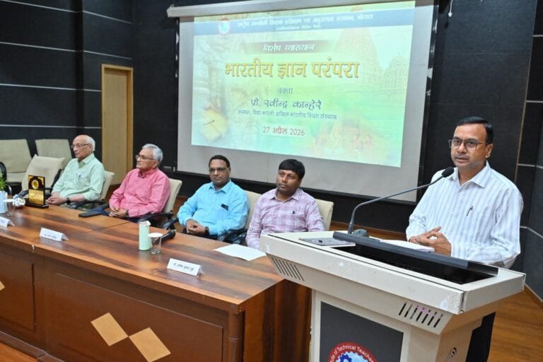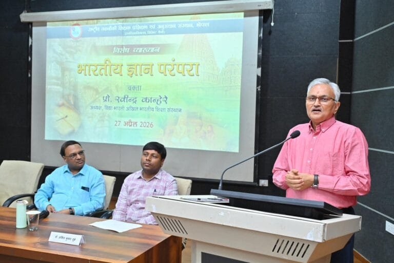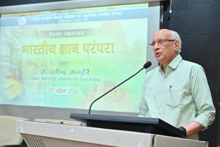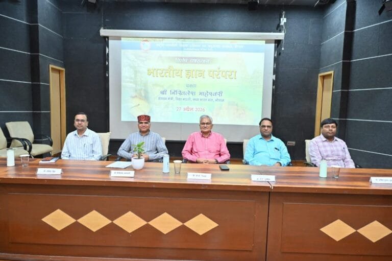 भोपाल/आदित्य शंकर तिवारी: NITTTR भोपाल में भारतीय ज्ञान परंपरा विषय पर एक भव्य कार्यक्रम का आयोजन किया गया, जिसमें भारतीय शिक्षा दर्शन, राष्ट्रचेतना और सांस्कृतिक मूल्यों पर गंभीर विमर्श हुआ। उद्घाटन सत्र के मुख्य वक्ता डॉ. रविन्द्र कान्हेरे, अध्यक्ष, विद्या भारती अखिल भारतीय शिक्षा संस्थान तथा द्वितीय सत्र के मुख्य वक्ता निखिलेश माहेश्वरी, प्रांत संगठन मंत्री, विद्या भारती, मध्य भारत प्रांत रहे।