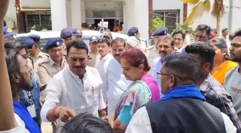 बुरहानपुर: मध्यप्रदेश के बुरहानपुर जिले में अड़गांव विवाद ने बड़ा राजनीतिक रूप ले लिया। बाबा साहब के बैनर फाड़े जाने की घटना से नाराज ग्रामीणों ने कलेक्ट्रेट पहुंचकर जोरदार प्रदर्शन किया। हालात ऐसे बने कि प्रभारी मंत्री तुलसी सिलावतको बैठक छोड़कर जनता के बीच आना पड़ा और जमीन पर बैठकर उन्हें शांत करने की कोशिश करनी पड़ी। यह घटना अब प्रशासन और कानून व्यवस्था दोनों के लिए बड़ी चुनौती बन गई है।