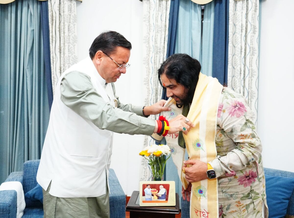 - dehradun-cm-dhami-devkinandan-thakur-discuss-spiritual-awareness