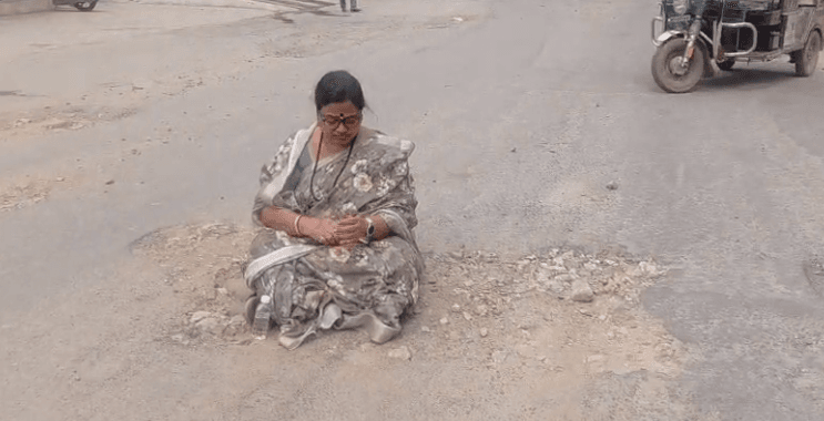 ग्वालियर: खराब सड़कों के खिलाफ बीजेपी पार्षद का धरना; प्रशासन को दी चेतावनी