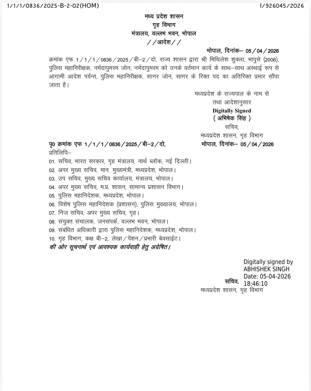 - madhya-pradesh-police-administrative-shuffle-mithilesh-shukla-sagar-zone-charge