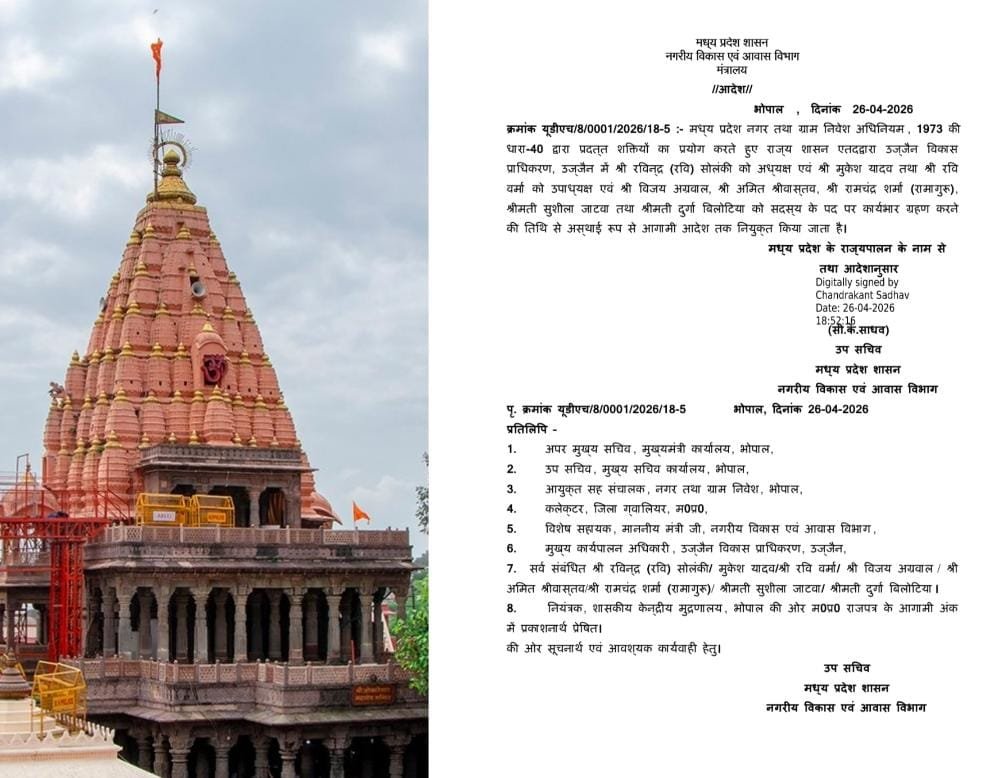 भोपाल/आदित्य शंकर तिवारी: मध्यप्रदेश| अहम प्रशासनिक और राजनीतिक नियुक्तियों की खबर सामने आई है। राज्य सरकार ने उज्जैन, अमरकंटक और ग्वालियर सहित प्रमुख विकास प्राधिकरणों में नए अध्यक्षों की घोषणा की है। इन नियुक्तियों को संगठन और विकास कार्यों को गति देने के रूप में देखा जा रहा है।