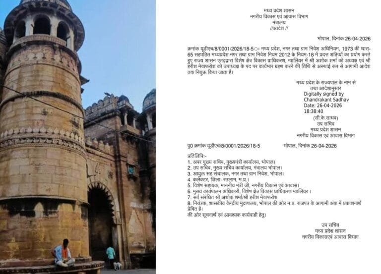 ग्वालियर विकास प्राधिकरण में नई नियुक्ति