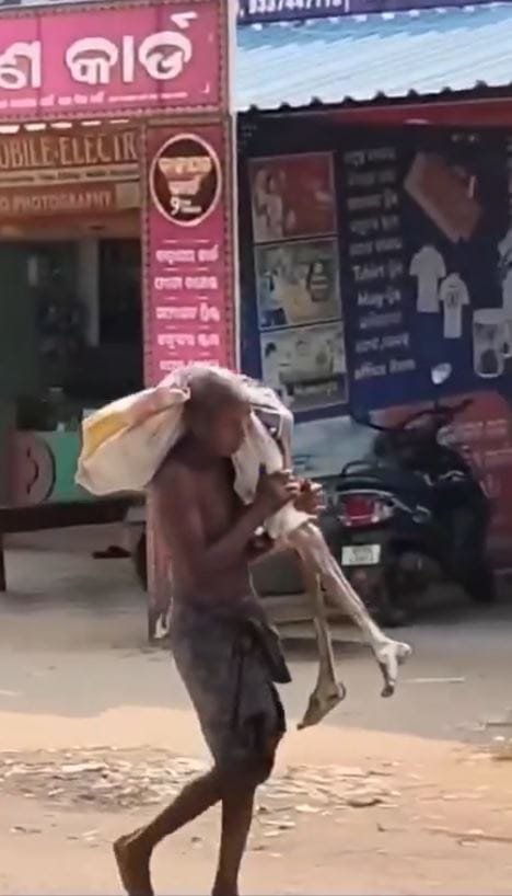 अप्रैल की चिलचिलाती धूप में यह शख्स ने अपनी बहन के कंकाल को कंधे पर लेकर पैदल-पैदल बैंक जा पहुंचा। सिर्फ़ यह साबि त करने के लिए कि उसकी बहन की मौत हो चुकी है। यह शख़्स अपनी बहन के खाते से 19,300 रुपये निकालने के लिए एक महीने से बार बार बैंक का चक्कर लगा रहा था। लेकिन ओडिशा ग्रामीण बैंक के मैनेजर ने उसको बार बार यही कह कर लौटा दिया कि खाताधारक को व्यक्तिगत रूप से लेकर आओ।