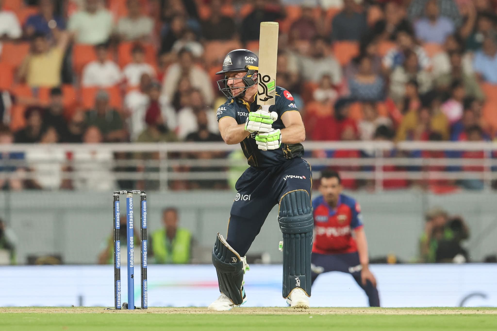 पहले बल्लेबाजी करते हुए गुजरात के लिए इस मुकाबले में ओपन‍िंग करने हुए कप्तान शुभमन गिल और साई सुदर्शन ने तेज शुरुआत की. लेकिन चौथे ओवर की चौथी गेंद पर मार्को जानसेन ने साई सुदर्शन (13) को कप्तान श्रेयस अय्यर के हाथों कैच आउट करवाया. इसके बाद जोस बटलर और शुभमन ग‍िल स्कोर ने अच्छी पार्टनरश‍िप की लेकिन ग‍िल 39 रन बनाकर चहल की गेंद पर आउट हो गए. गुजरात को तीसरा झटका ग्लेन फ‍िल‍िप्स (25) के रूप में लगा, जो 119 के स्कोर पर विजयकुमार वैशाक की गेंद पर आउट हुए जोस बटलर (38) भी एक तरफ से अच्छे टच में रहते हुए पारी को 161 रनो पर पहुँचाया।