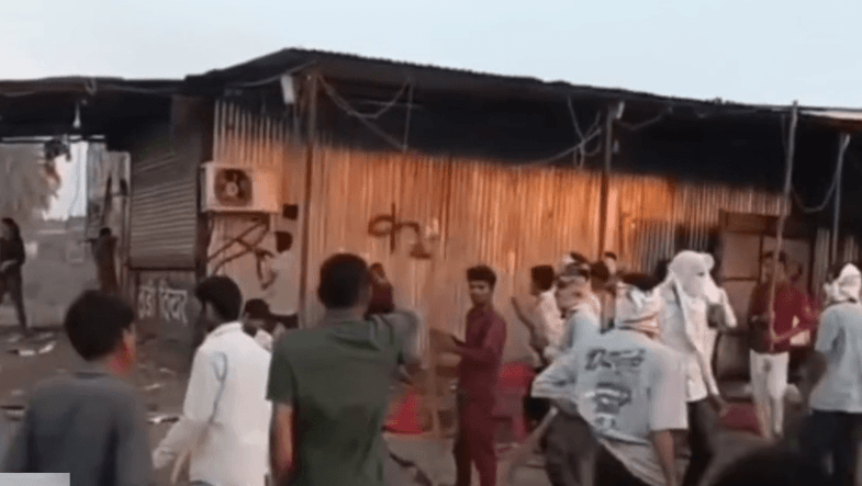 दुकान में तोड़फोड़ और आगजनी